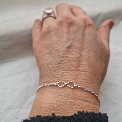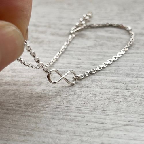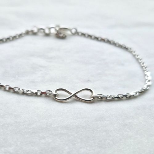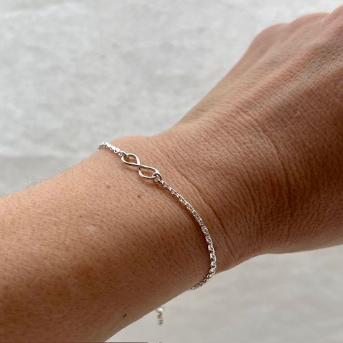 Eternity is a delicate bracelet in sterling silver. Each eternity is hand made separatley so they can vary slightly in size. Carry Eternity bracelet to remind yourself that you are loved, or gift it to someone to show him/her what he/she means to you.