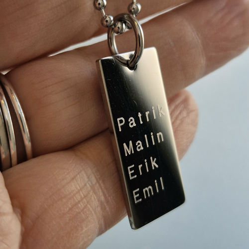 Family tag is a piece of name jewelry where you engrave the names of your children on a rectangular tag-. A classic easy-to-wear necklace. A perfect gift to your beloved.