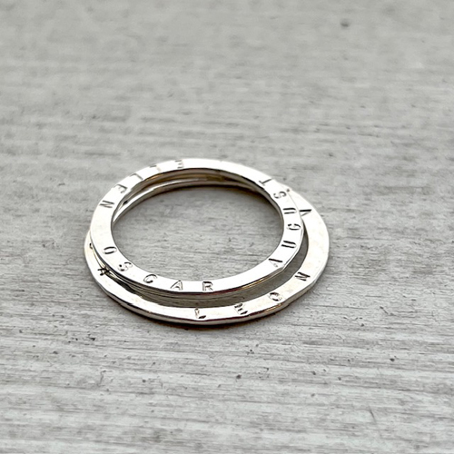 I priset ingår gravyr av upp till 20 tecken på standardstorleken, och upp till 40 tecken på den större storleken. Vi handstämplar namnen/texten på ena sidan av cirkeln. Vill du få plats med mer text kontakta oss - vi kan lösa det mesta. :)